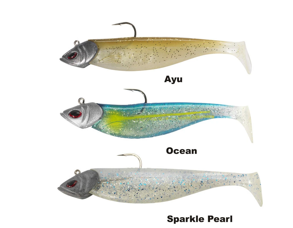 Dieser fertig montierte Gummifisch von Berkley ist in drei Farben, zwei Gewichten und zwei Größen verfügbar. Der Shad wird mit Ersatzschwanz geliefert.