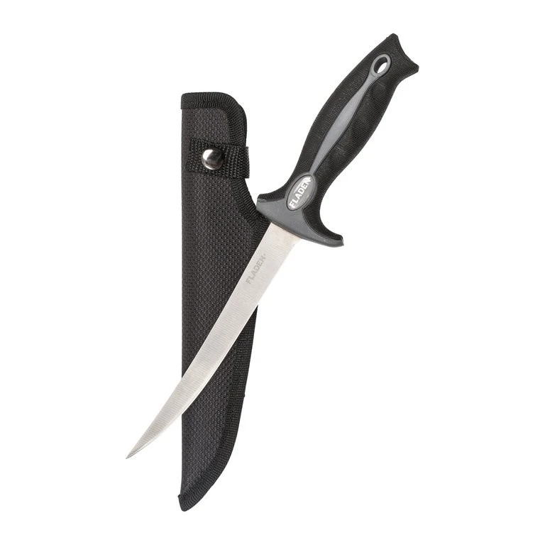 Dieses Filetiermesser hat eine Klingenlänge von 18cm und besteht aus rostfreiem Stahl, Der Griff ist rutschfest und hat eine Länge von 14cm. Am Ende ist eine Abrutschsicherung, damit die Hand nicht ausversehen abrutscht und sich an der Klinge verletzt. Geliefert wird das Messer mit einer Scheide.