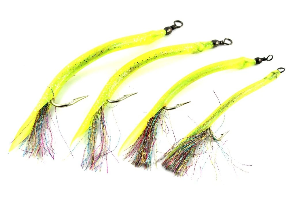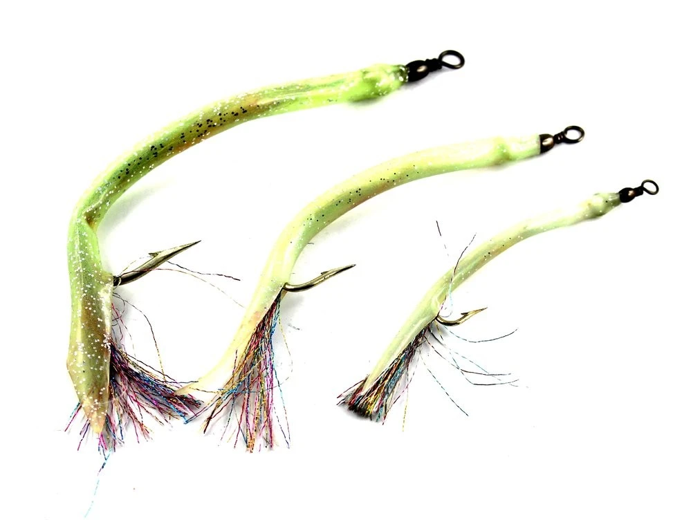 Dieses Sortiment besteht aus 5 losen Gummi-Makks in einer Größe. Es stehen vier Farben in den Größen 4/0 bis 12/0 zur Verfügung. Die Makks haben alle extra Tinsel und Glitter, was diese noch verführerischer macht. Die Haken sind besonders stark.