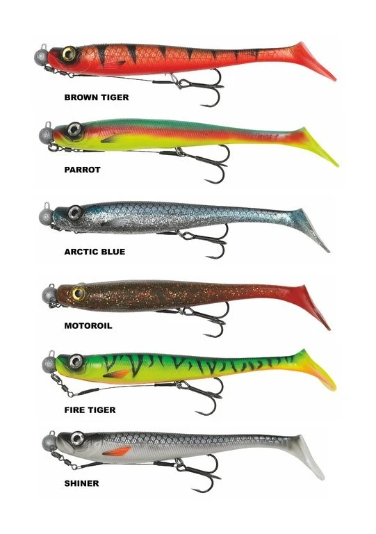 Ein simples Konzept für den Angler, der einfach schnell einen perfekt laufenden Köder montieren möchte. Die Gummiköder wurden bereits mit Srew-in Jigköpfen (bleifrei) und einem Stinger mit Mustad-Haken montiert und ebenfalls fängige Farben für Sie ausgewählt. Es sind 6 Farben uns zwei Gewichte von 30g und 62g verfügbar.