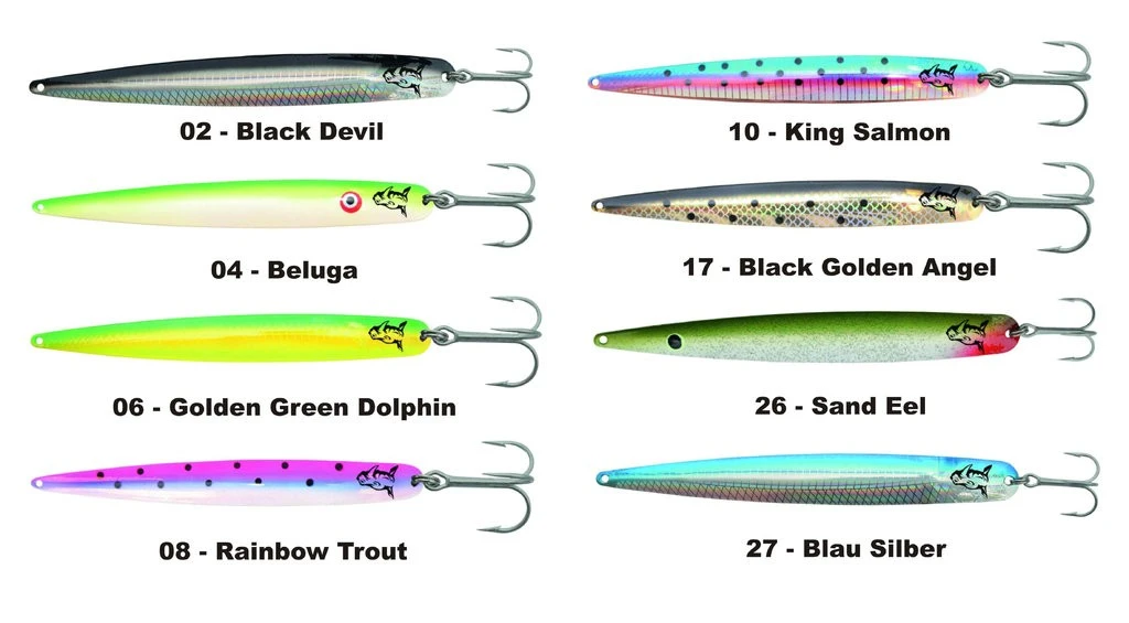 Neben der Farbe spielt natürlich auch die Form eine Rolle. Sind die Fische auf Sandaale fixiert, kommt dieser neu entwickelte Trollingköder zum Einsatz. form, Lauf und Farbe ahmen die Tobys perfekt nach. Verfügbar in 8 verschiedenen Farben. 1 Stück im SB-Pack