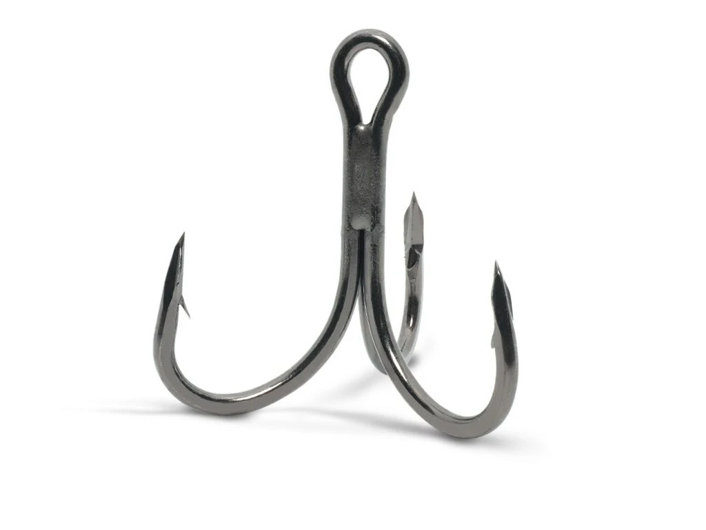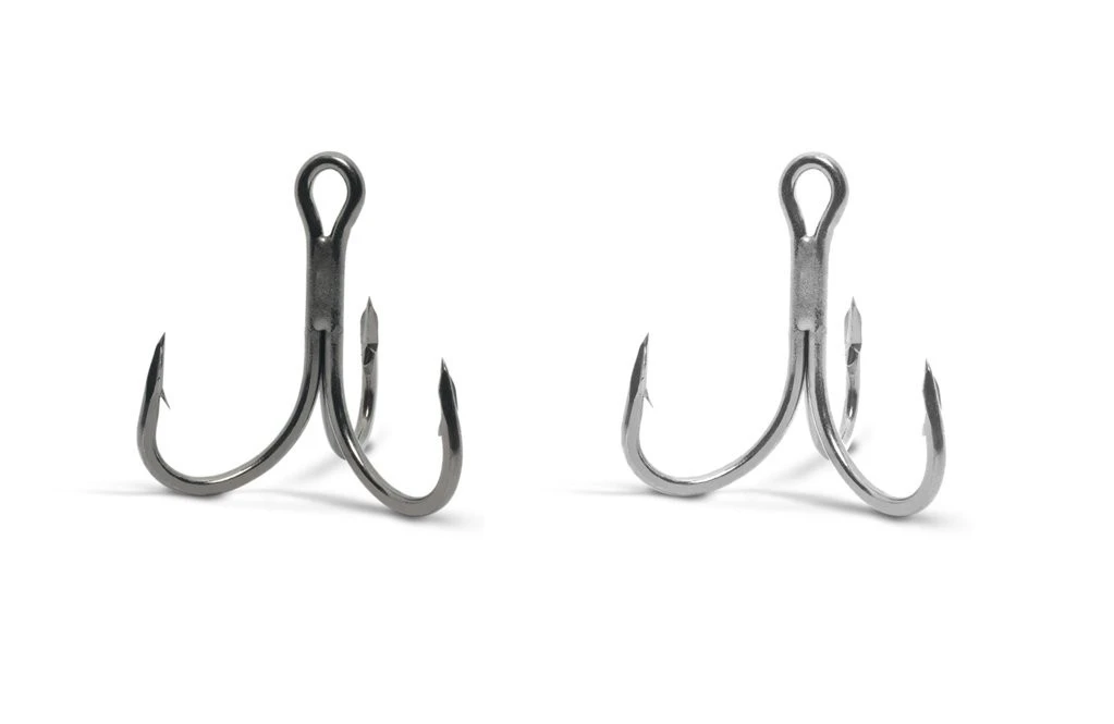 Dieser berühmte Haken (6x) wird bevorzugt beim tropischen Angeln verwendet. Er ist aber auch ideal für Heilbutt und andere große Räuber. Der Drilling ist hoch widerstandsfähig und angemessen, um tropische Wobbler zu bestücken. Die Spark Point Spitze wird mit einem außergewöhnlichen Verfahren hergestellt. Die Spitze ist durch Materialverdichtung gehärtet und wird anschließend chemisch geschärft. Sie besitzt Rippen vorn und hinten, was ihr eine permanente Festigkeit gewährt. Die Vertiefungen an der Spitze sorgen dafür, dass beim Anhieb Energie freigesetzt wird, wodurch der Haken blitzschnell eindringt. Diese Haken gibt es als TI (verzinnt) oder CB (Black Nickel) in den Größe 1 bis 6/0.