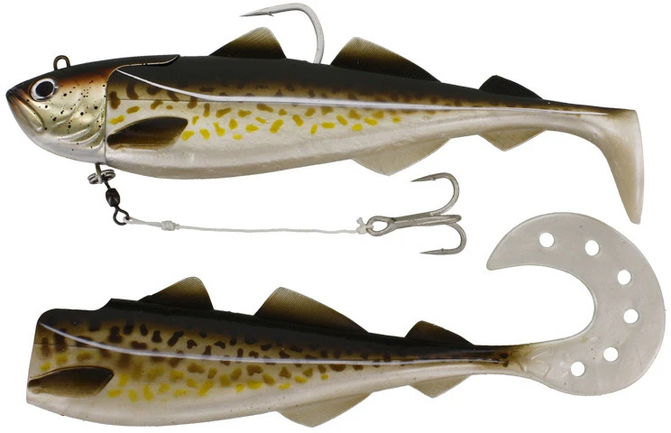 Dieser Gummifisch kommt dann zum Einsatz, wenn es schwierig ist große Dorsch und Heilbutts zu überlisten. Dieser Köder erhöht die Chancen einen dieser Räuber zu überlisten. Die sehr gute Bewegung auch bei langsamer Fischerei, ist an die Schwimmweise der Seelachse angepasst, welche die Hauptnahrung dieser Räuber darstellen.