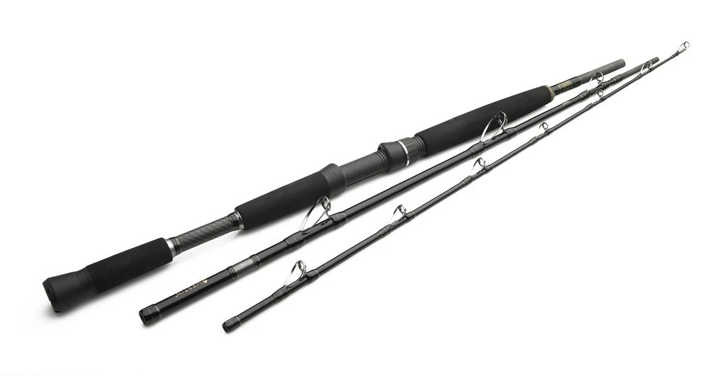 Diese dreigeteilte Reiserute ist die perfekte Begleiterin im norwegischen Angelcamp, in Spanien zum Wallerfischen aber ebenso gerne dabei, wenn die Reise auf eine Insel in den Tropen führt. Die griffige Gummi-Abschlusskappe mit Kreuzschlitz ist eine tolle Alternative zu den herkömmlichen Abschlusskappen mit Kreuzschlitz aus Hartplastik oder Metall. Die Abschlusskappe passt in einen Bauchgurt, aber auch ohne diesen kann der eine oder andere Monsterfisch dank Comfort Cross Gimbal deutlich „magenschonender“ gedrillt werden. Die verbauten Schnurlaufringe von LTS liegen eng am Blank an (Low Rider) und gehören zu den robustesten salzwassertauglichen Ringen für Bootsruten am Markt. Der Blank aus Kohlefaser von TORAY ist extrem robust und hat ein tolles Preis-Leistungsverhältnis.