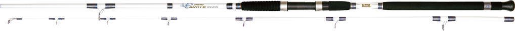 Great White-Ruten sind unverwüstliche Meeresangelruten aus einem einzigartigen Mix aus Glasfasern und Epoxy. Materialien, die noch lange nicht zum alten Eisen zählen! Sie beweisen ihre Vorzüge immer wieder auf’s Neue. Die Univers ist dabei eine kräftige Meeresrute mit einer Mischberingung für den Gebrauch von Multi- als auch Stationärrollen. Dorsch, Leng und Heilbutt sind die Gegner, mit der es diese Rute aufzunehmen vermag.